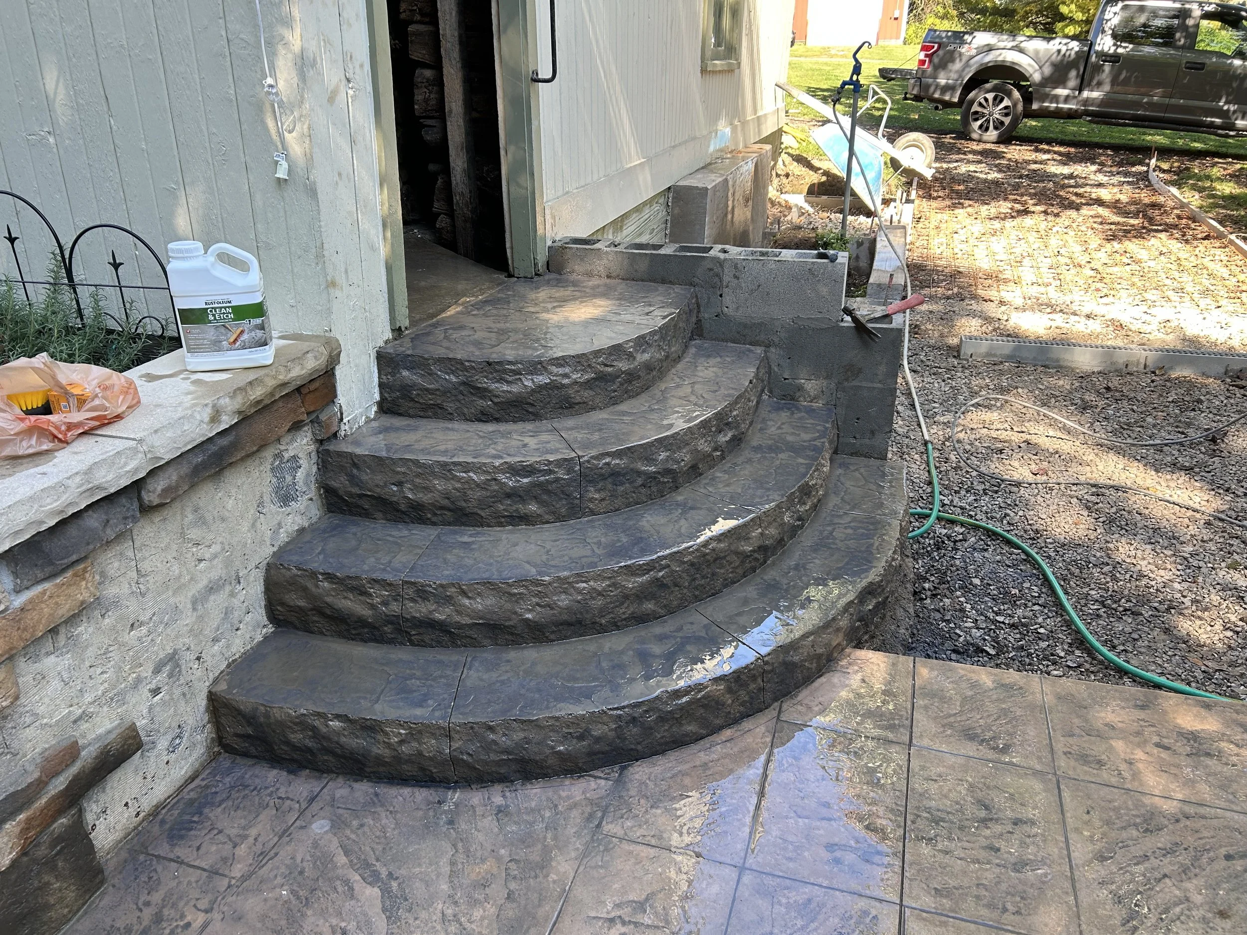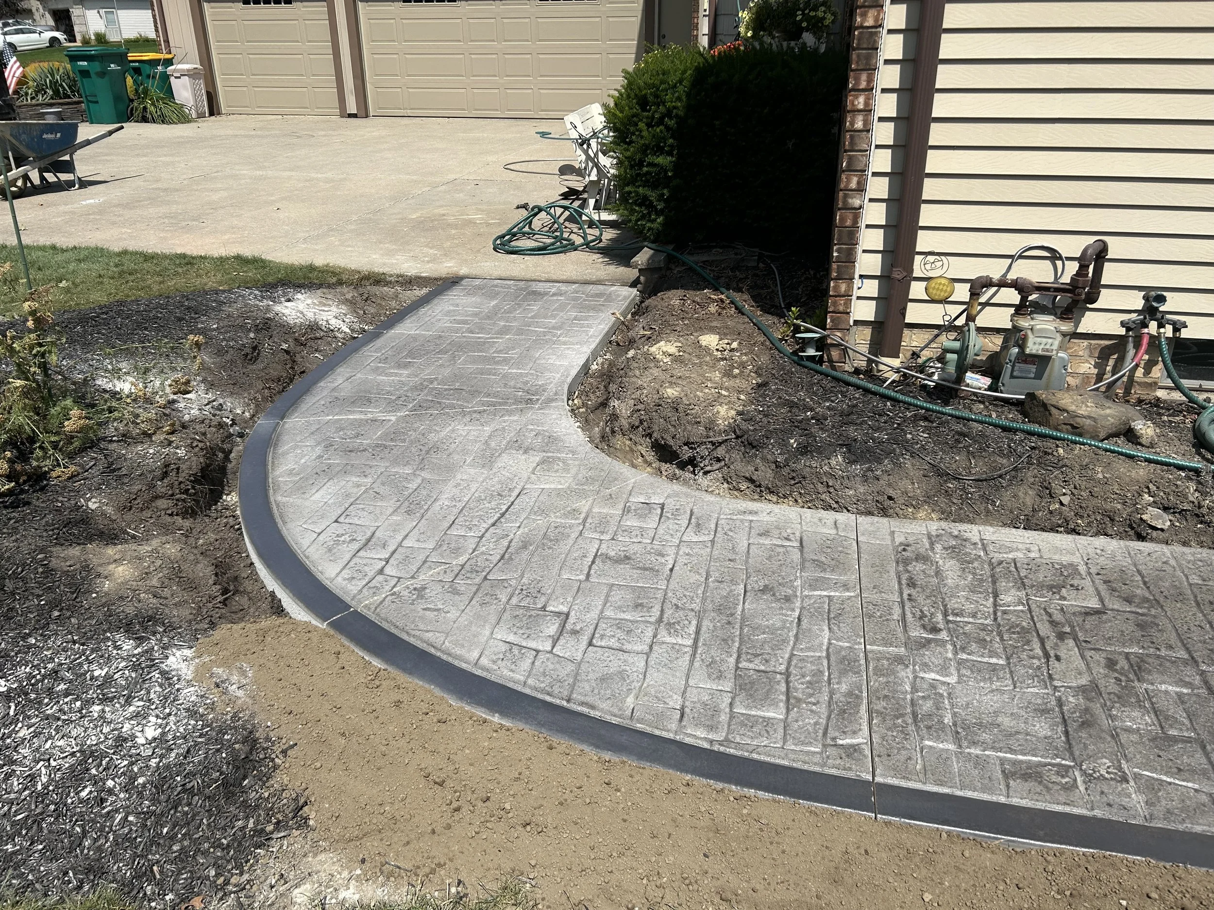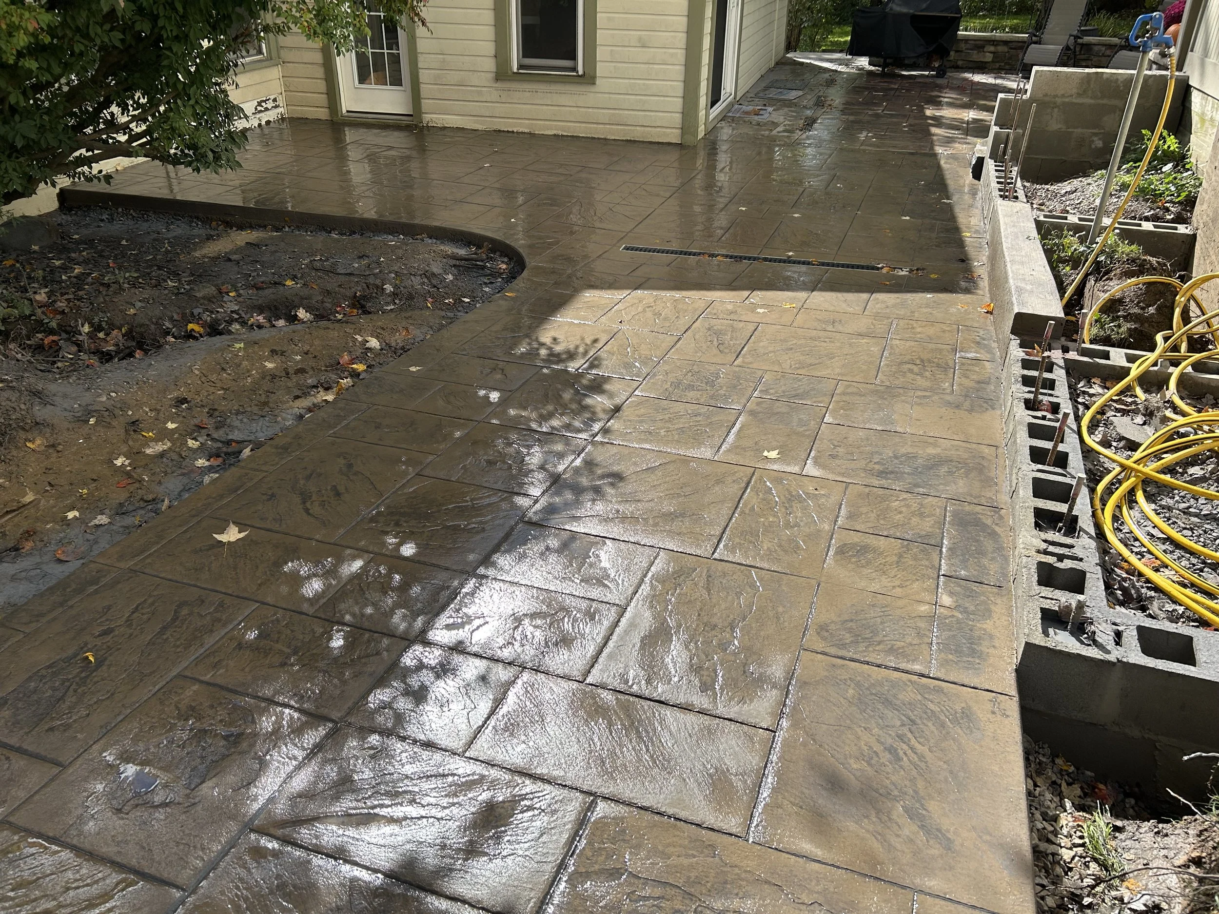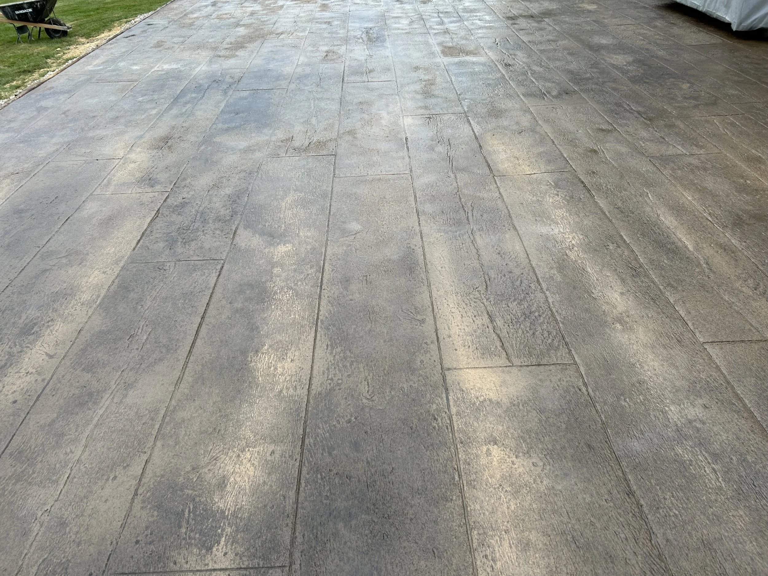 Seamless granite stamp with color Stone stamp with color and drainage Detailed stamped and colored steps Two toned walkway with stamped detail Wood look, less maintenance You dream in, we create it